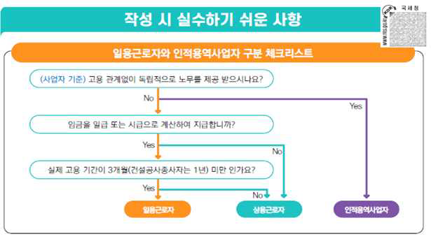 *일용근로자와 인적용역사업자 구분방법을 체크리스트 형식으로 제공