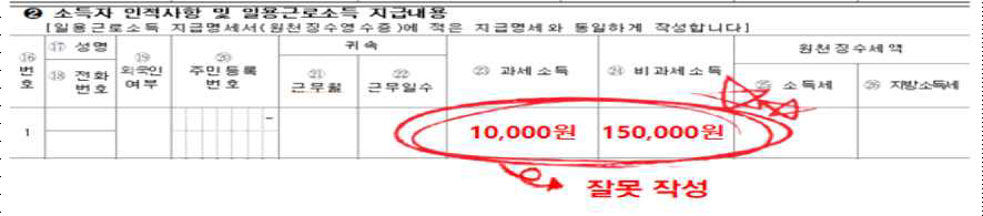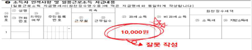일용지급명세서 제출 시 「과세소득」 작성 유의