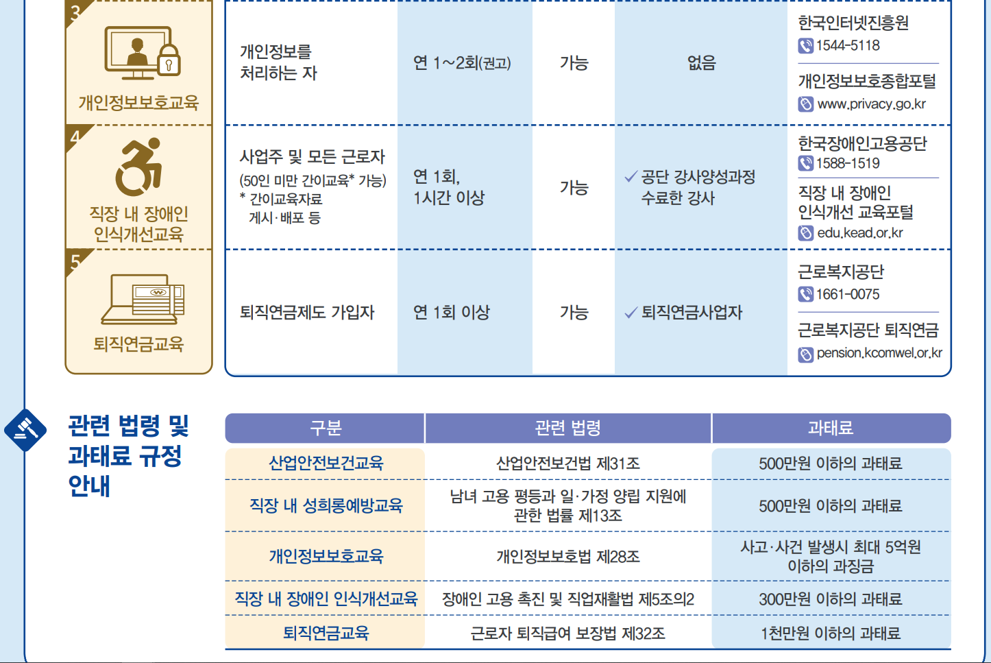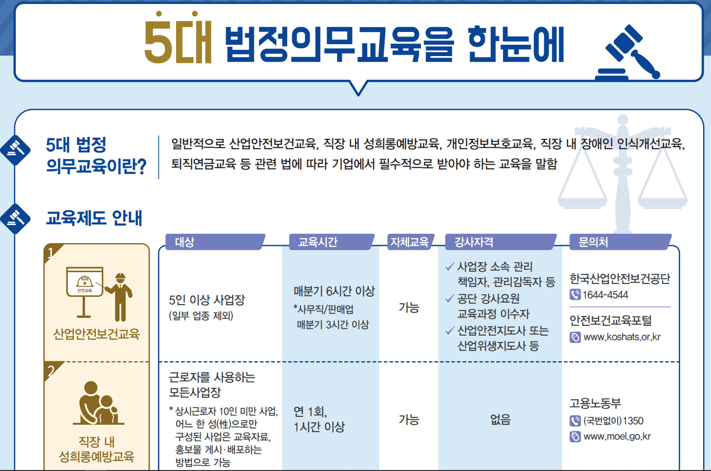 5대 법정의무교육 종류와 의무적용 대상사업자