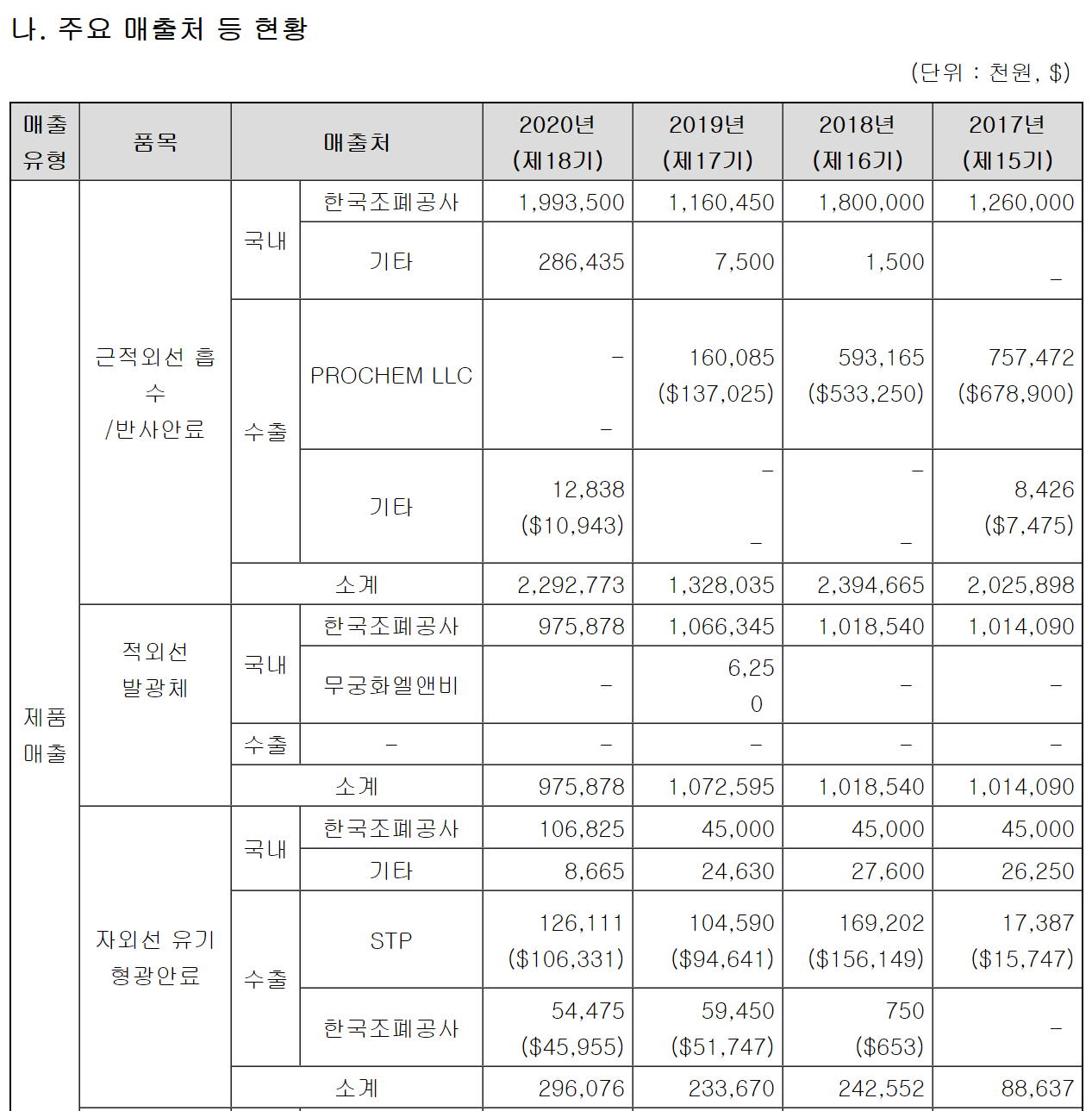 국내의 경우 은행권 및 여권 등의 인쇄에 적용되는 첨단보안물질은 한국조폐공사에만 납품을 진행하고 있습니다. 이에 한국조폐공사와의 오랜 협력관계를 유지하면서, 한국은행권의 보안강화를 위한 새로운 보안안료를 공동으로 개발하여 왔으며, 당사가 독자 개발한 신물질의 적용을 위한 연구도 꾸준히 진행하고 있습니다.