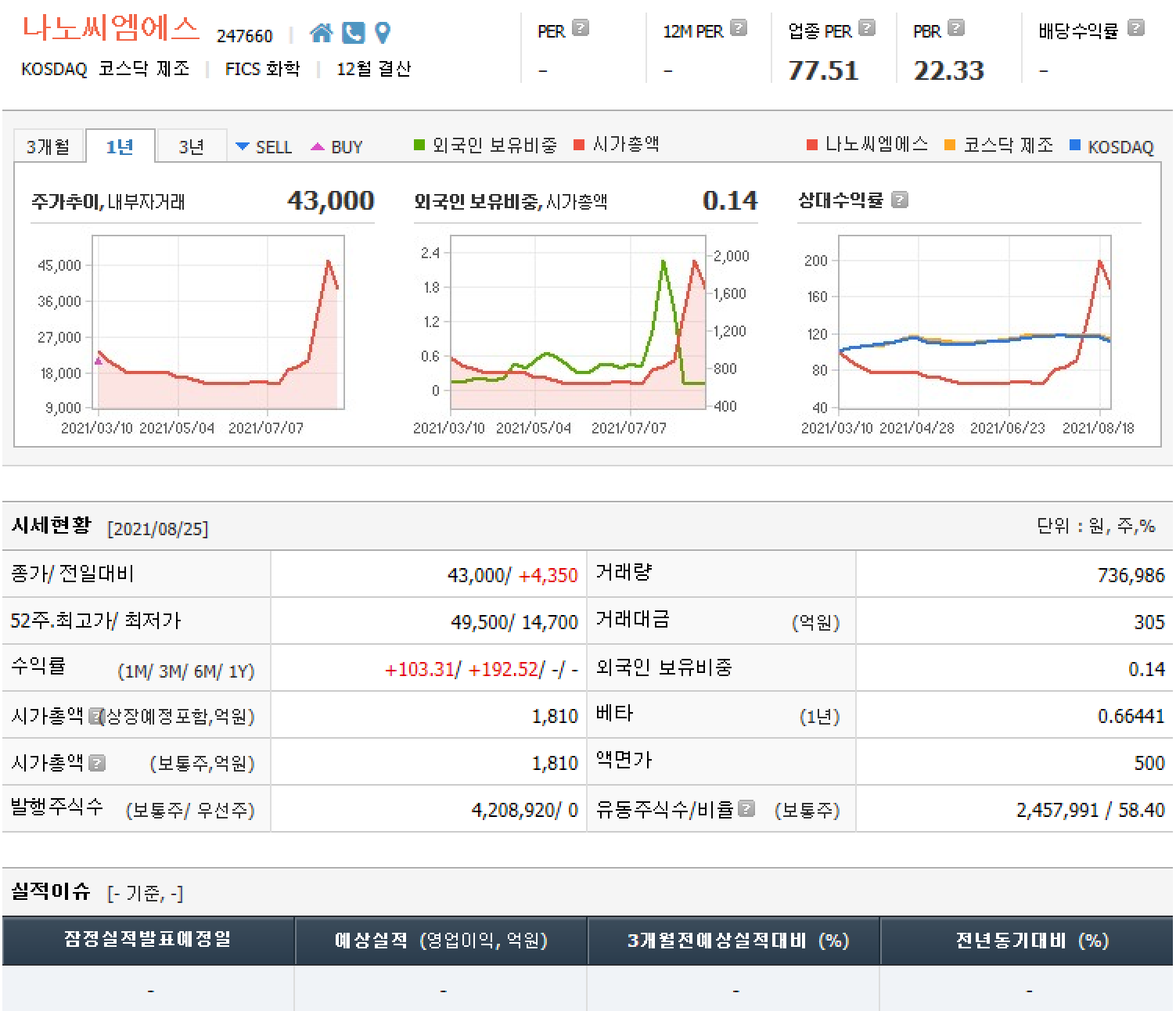 나노씨엠에스, 가파른 상승세로 15% 급등…5만원선 재돌파 눈앞