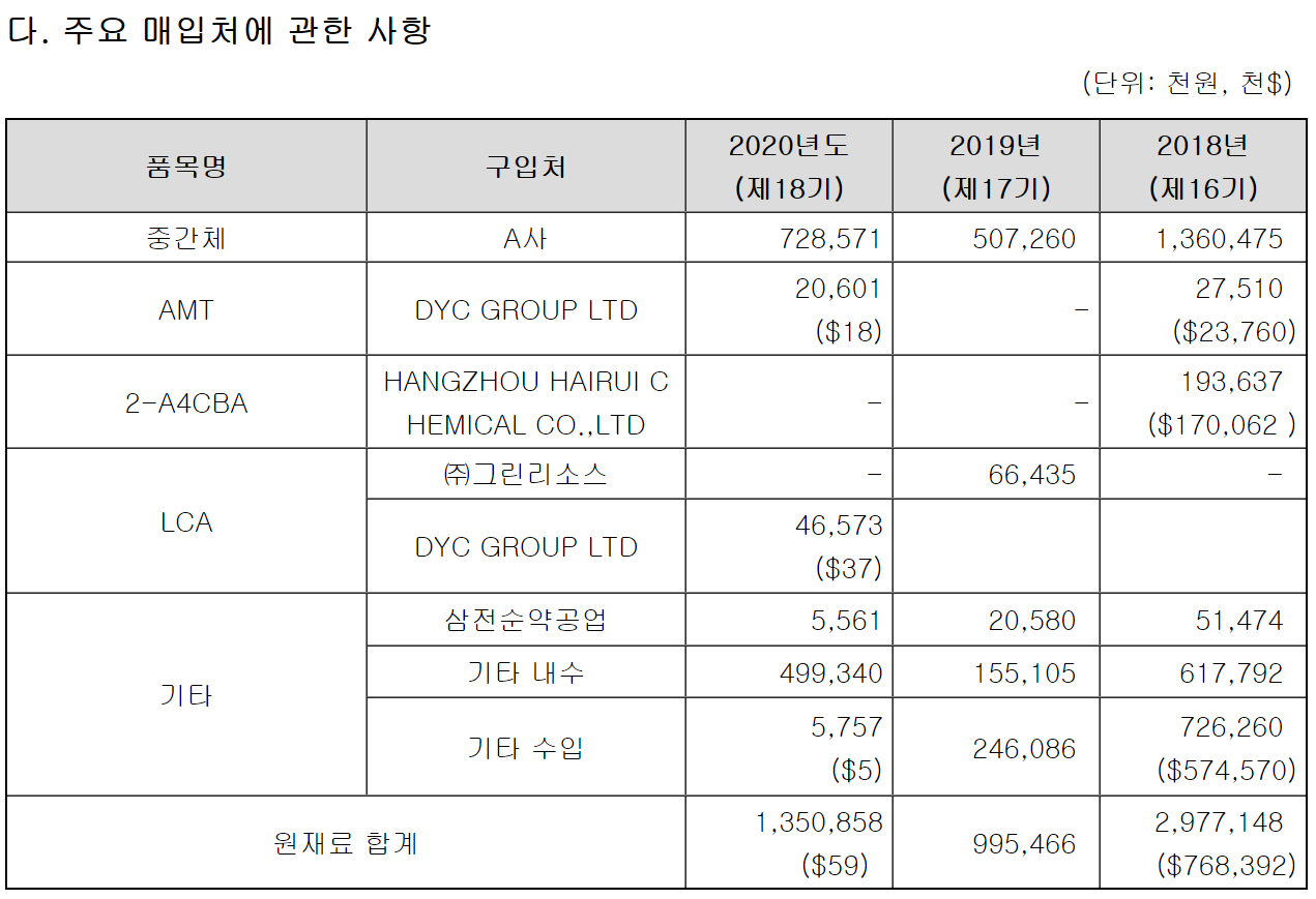 - 현 적용물질의 지속적인 품질관리 및 가격변동에 대비한 원가 절감 노력